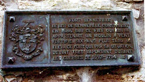 LE BER DE SENNEVILLE, CONSTRUISIT EN 1686, SUR CE FIEF FORT SENNEVILLE QUI LUI APPARTENAIT, UN MOULIN À VENT FORTIFIÉ. SIX ANS PLUS TARD IL ÉLEVA CE FORT QUI, PAR SA SITUATION, DEVINT TRÈS IMPORTANT DURANT LES GUERRES DE 1692-1714.