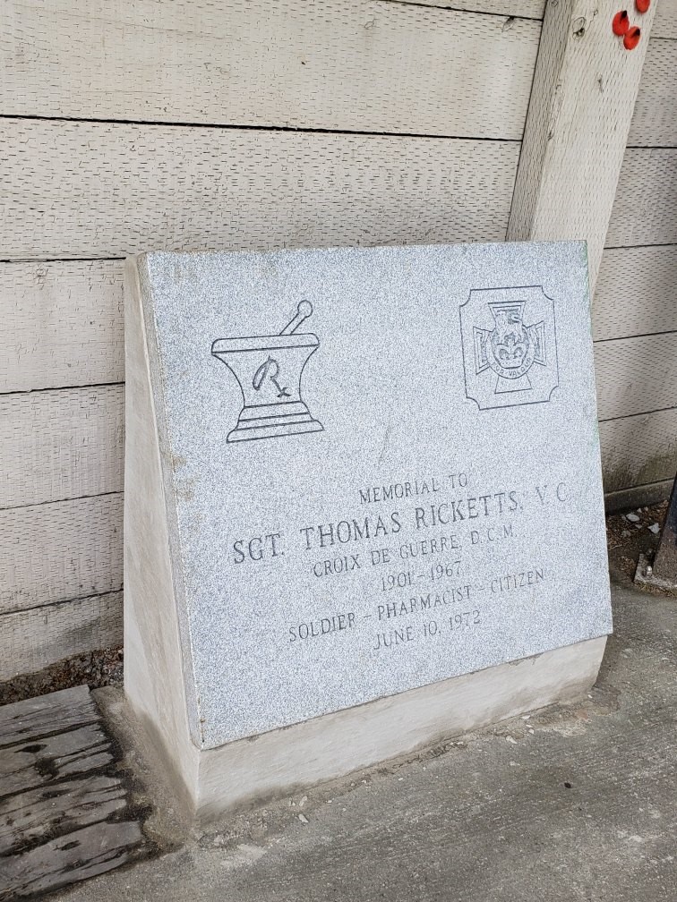 The Sergeant Thomas Ricketts V.C. Memorial was erected on June 10, 1972. It was taken down in 2008 to be refurbished and not re-installed until 2021. The memorial is located at the corner where he ran a drugstore after the war. It opened in 1934 and Ricketts was known to many as the primary health-care provider for the west end of St. John's.