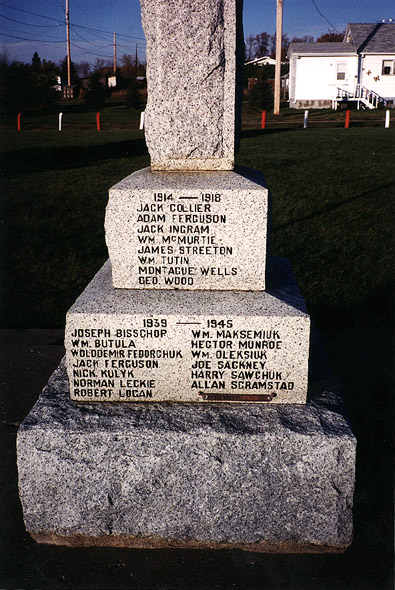 This memorial is dedicated to the Veterans of the area killed in action. It was erected by the Sheho Royal Canadian Legion Branch no. 356.
