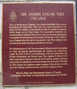 The plaque dedicated to Sir James Lucas Yeo was erected by Historic Sites and Monuments Board of Canada. See plaque inscription for more details.