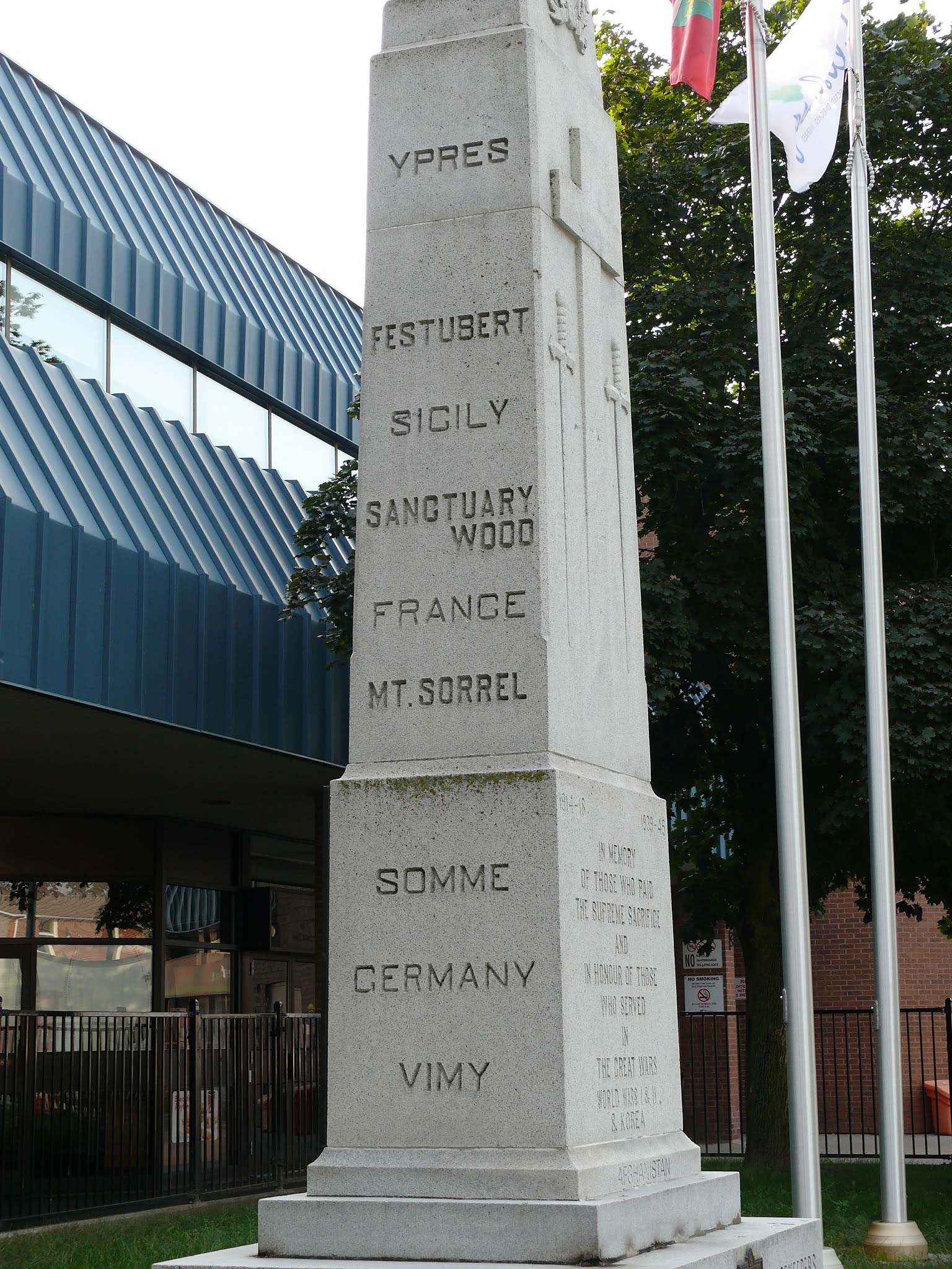 In 2015, a memorial plaque with the names of those who served in the First and Second World Wars was added to the back of the monument. The plaque was donated by Flying Officer Jim Sergeant, Royal Canadian Air Force, Second World War, who passed away in November 2013.