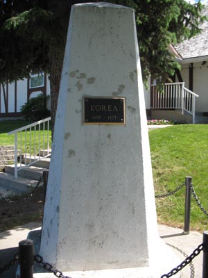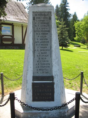 This cenotaph, a four-sided granite obelisk with beveled corners, was erected by the Royal Canadian Legion Branch #107 sometime after 1918. It is located in front of St. Mary’s Church, and is in memorial to the fallen of Sorrento.