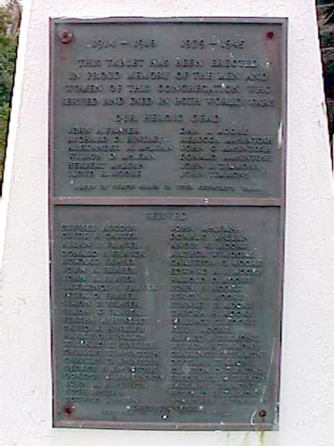 This memorial is dedicated to the members of St. Andrew's United Church congregation who served and those who died in the First and Second World Wars.