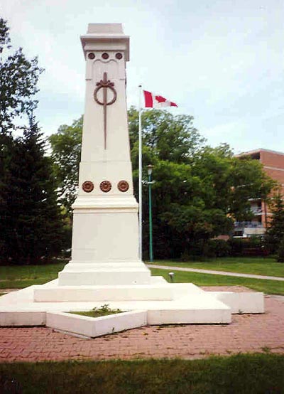 On this site a cenotaph, dedicated to the local war dead of the First World War, was originally erected by the city of St. James and unveiled on 30 June 1936. Having fallen into disrepair, it was replaced by a new memorial, this shaft. Erected by Royal Canadian Legion Branch No. 4 (St. James) and the City of Winnipeg Parks and Recreation Branch, it was unveiled on 30 September 1990, and adds dedications to the local war dead of the Second World War and the Korean War.