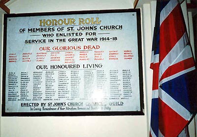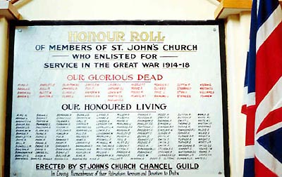 Erected by the Chancel Guild of St. John's Cathedral, this memorial is dedicated to the members of the congregation who were veterans or war dead of the First World War.