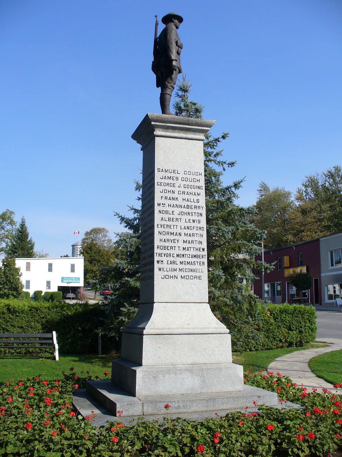 The first official Armistice Day ceremony held in St. Marys did not occur until 1924 and was organized by the Women’s Institute. These ceremonies continue to be held annually at the St. Marys Cenotaph. The area surrounding the cenotaph was officially named Memorial Park in June 2008 to commemorate the citizens of the community who served, or who will serve.