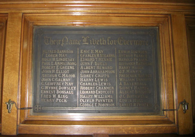 Unveiled in 1918, this stained glass window and plaque are dedicated to the members of the parish who gave their lives during the First World War.