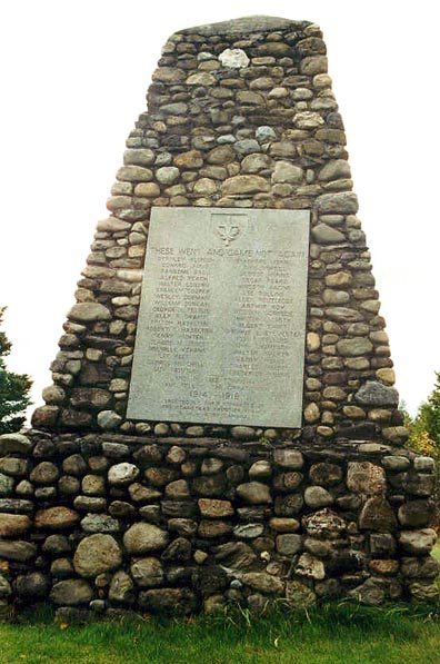 This stone cairn, erected by the Stanstead Frontier Branch G.W.V.A. of Canada and the Stanstead Frontier Branch Canadian Legion B.E.S.L., is dedicated to the citizens of Stanstead who died during the two Great World Wars.