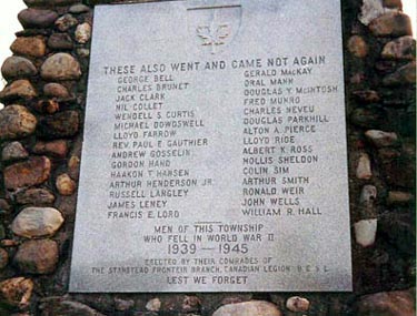 ERECTED BY THEIR COMRADES OF THE STANSTEAD FRONTIER BRANCH, CANADIAN LEGION B.E.S.L.