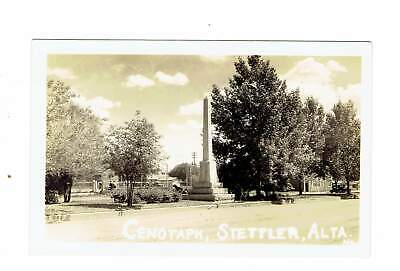 The Cenotaph was originally erected by the Royal Canadian Legion, Branch No. 59 in 1937. Lord and Lady Tweedsmuir unveiled the War Memorial that year and laid a wreath in honour of the 55 names that were engraved on the memorial at that time. The Cenotaph was located on the boulevard on Main Street. Sharpe's Memorial Park was dedicated following Second World War by the Sharpe family in memory of the two sons they lost during the war. The park was later donated to the Town and rededicated in 1951 to all those who lost their lives in both World Wars. The Cenotaph was moved to the old Court House grounds in 1951 to accommodate changes to Main Street. Additions were made to the engraving and the names of those who lost their lives in the Second World War were added. Then, in 1955, the Stettler Branch began the task of relocating the Cenotaph once again, this time to Sharpe's Memorial Park where it now stands. The Korean War is now recognized on the Cenotaph. Since that time, although the Town of Stettler owns the park, the Stettler Branch has made significant changes with the construction of a brick and wrought iron fence, the installation of lighting, park benches, a flag pole, a garden, paving the pathways and providing a summer student each year whose sole duty is to maintain the park.