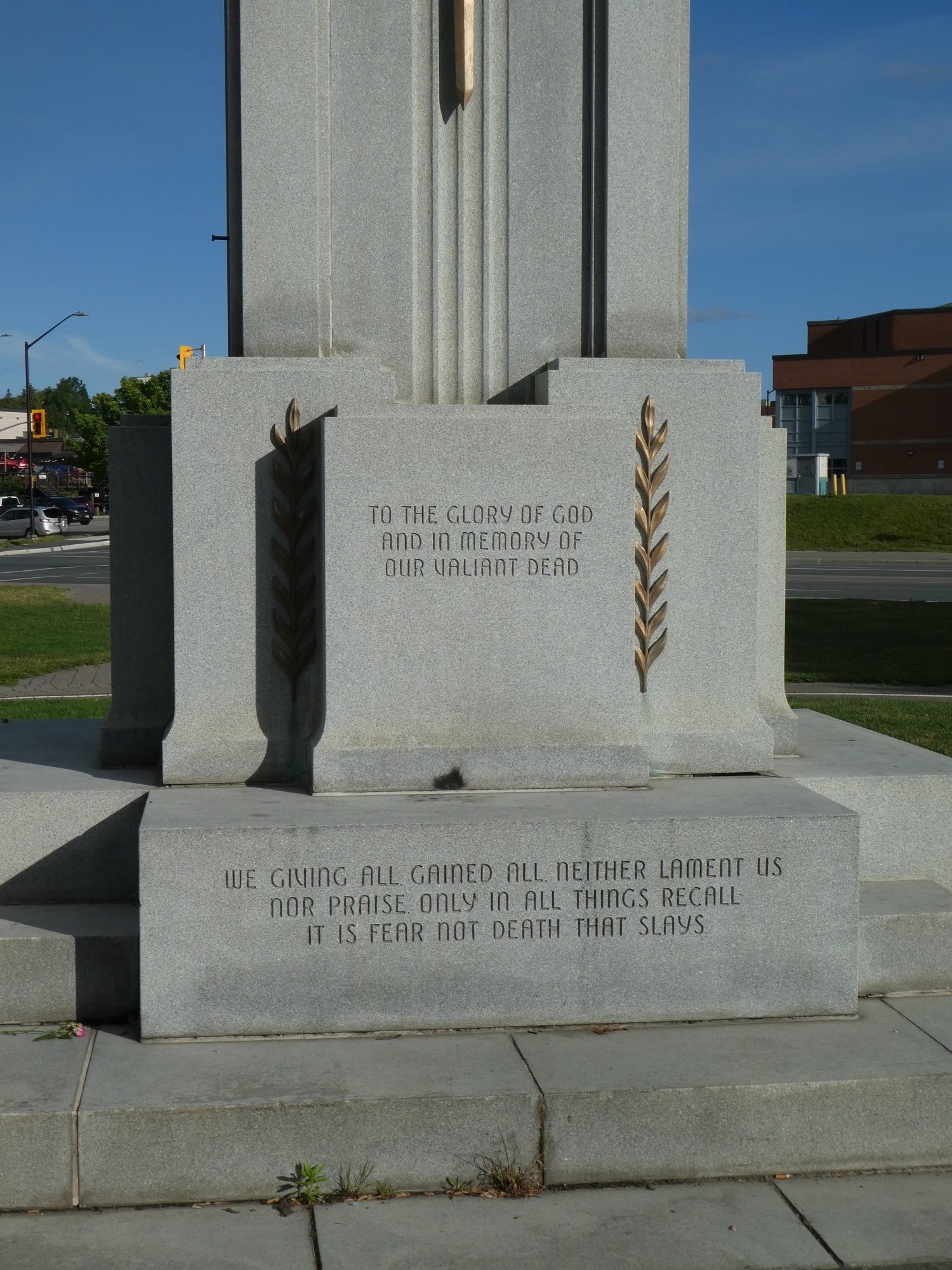 When plans were started for a new Cenotaph in Memorial Park, the area around the site was redesigned and landscaped as a project of the Sudbury Lions Club and the City of Sudbury. The Cenotaph was constructed by Branch 76, Royal Canadian Legion, at a cost of $16,000. It is made of granite, stands 19 feet tall, weighs 50 tons, and rests on a two-foot-thick, 18 feet square base. A poem composed by poet Laureate Rudyard Kipling for Branch 76, Royal Canadian Legion in 1928 is inscribed on the monument.