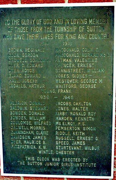 TO THE GLORY OF GOD AND IN LOVING MEMORY OF THOSE FROM THE TOWNSHIP OF SUTTON WHO GAVE THEIR LIVES FOR KING AND COUNTRY