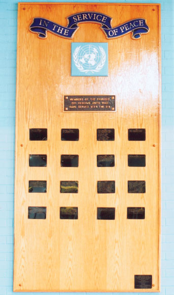 This memorial is dedicated to the members of the Thunder Bay Reserve Units that have served with the U.N. It was erected by the Thunder Bay Military Museum.