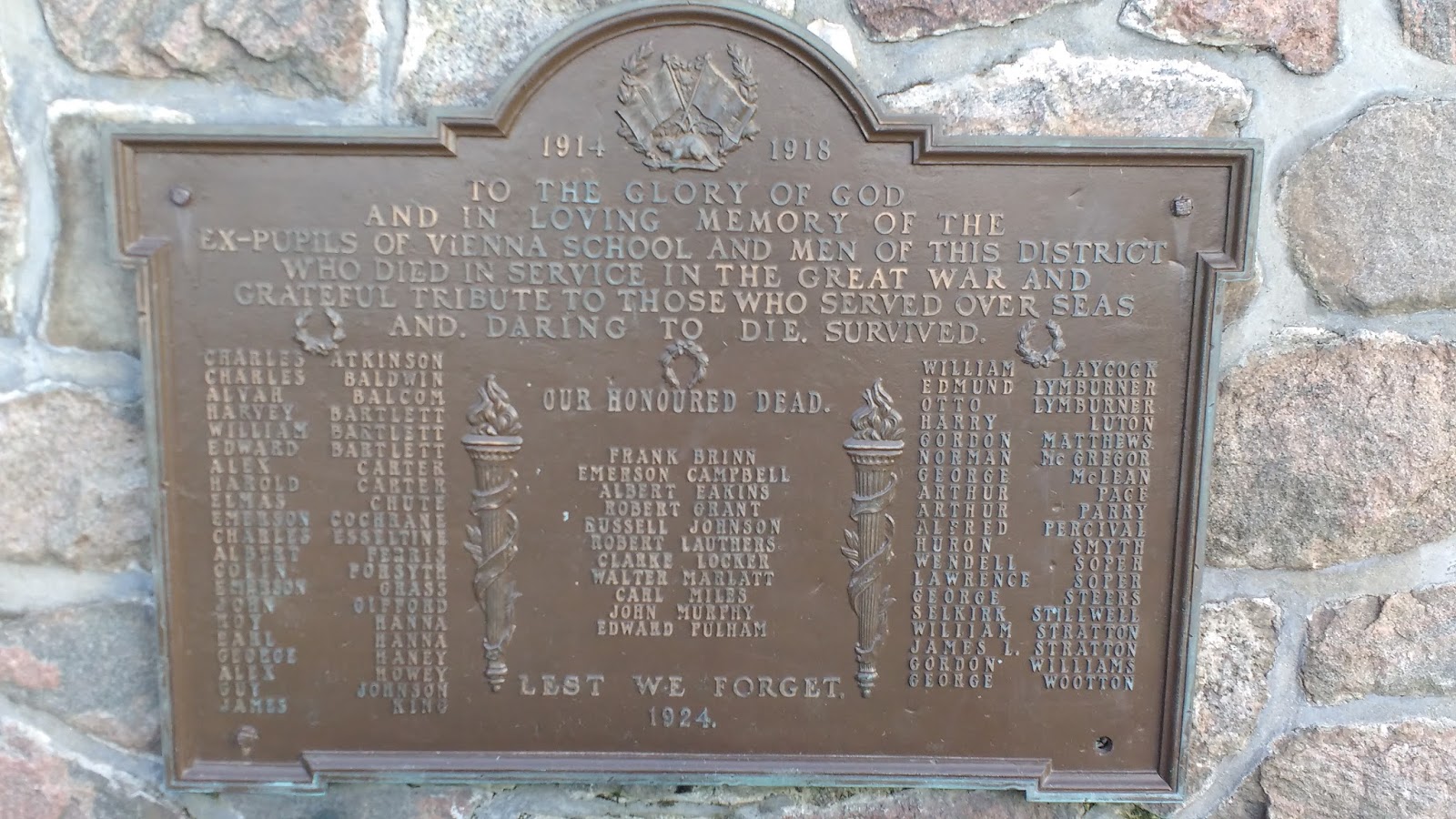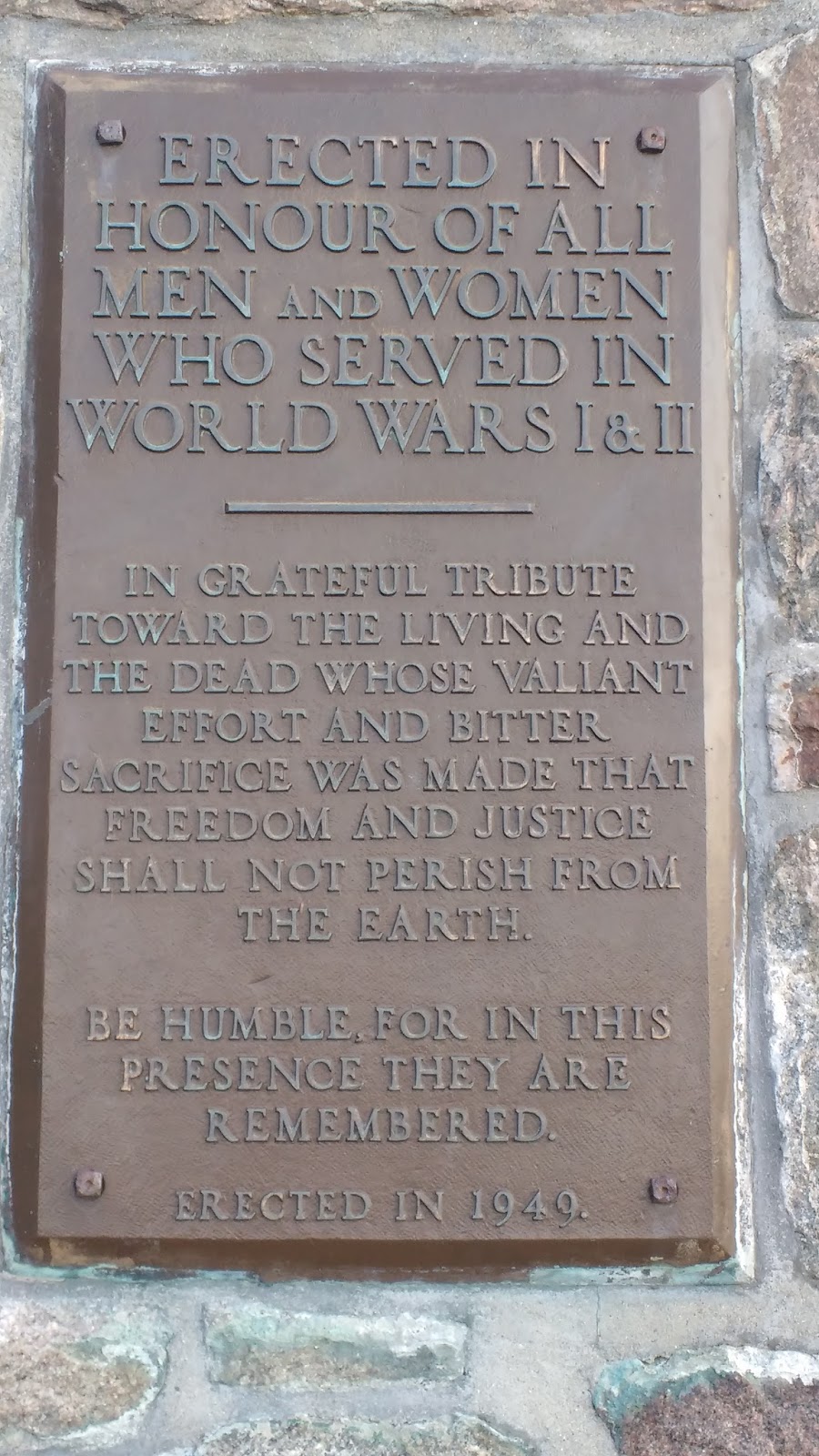 Erected in 1924, and expanded with a second plaque in 1949, this memorial is dedicated to the memory of all men and women who served in the First and Second World Wars.