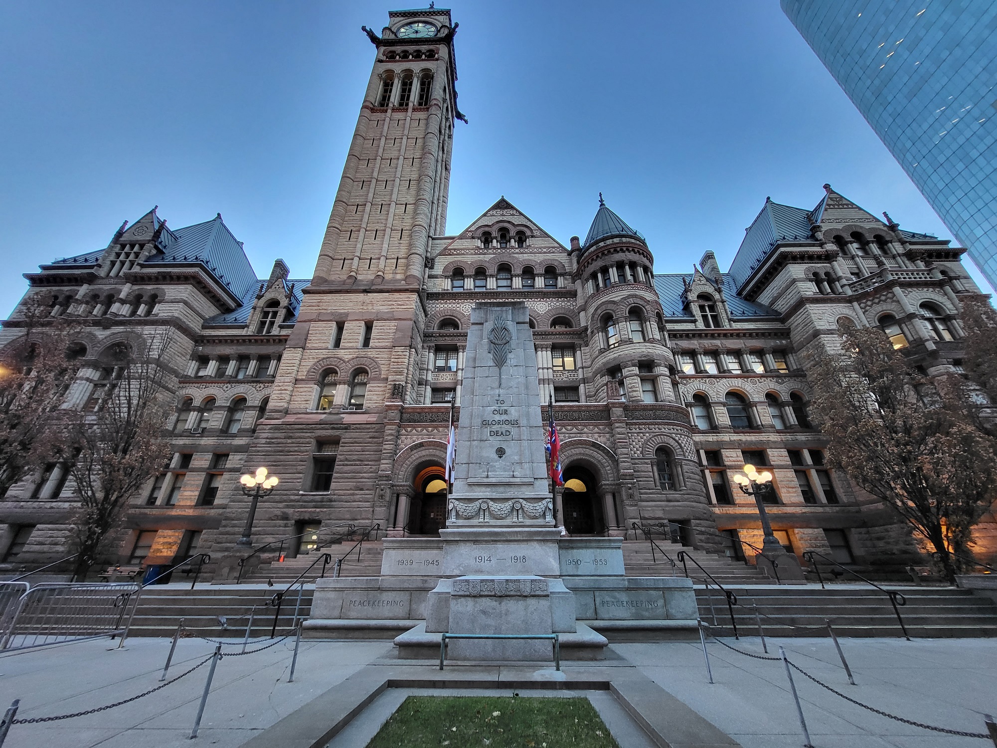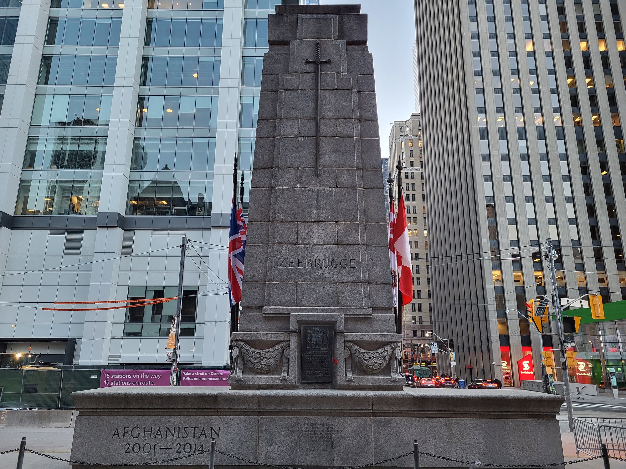 William Moncrieff Ferguson served with the 14th and 35th Battalions during WWI, then returned to Toronto in 1919. In 1924 both Ferguson and Pomphrey submitted an entry in the competition for the War Memorial Cenotaph in Toronto. From the fifty designs submitted, their scheme was awarded First Premium, accompanied by a generous fee and award of $2,500 for architectural services. A watercolour perspective of their design appeared in the R.A.I.C. Journal, ii, Jan.-Feb. 1925, 4. The WW I War Memorial Cenotaph was erected on Queen Street West at Bay Street, 1925-26. This is the main memorial in Toronto for Remembrance Day ceremonies.