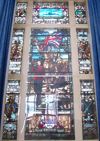 This memorial was erected by alumni and unveiled in 1944. The stained glass window is dedicated to alumni who served, and in some cases died during the First and Second World Wars.