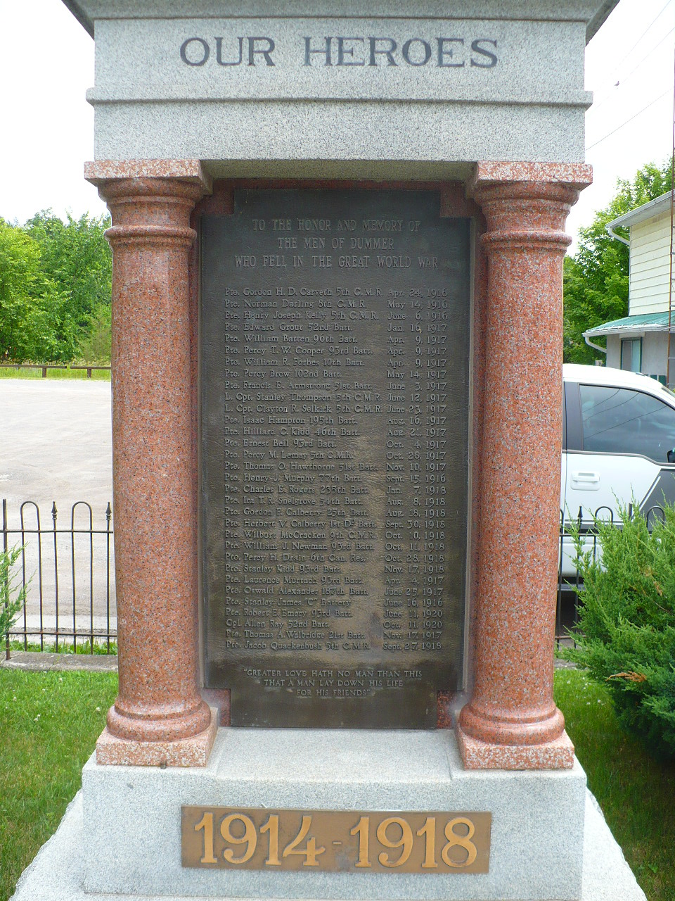 The Warsaw Cenotaph was unveiled on June 22, 1921. It was erected by the local memorial committee in honour of those from the Dummer Township that lost their lives in the First World War.