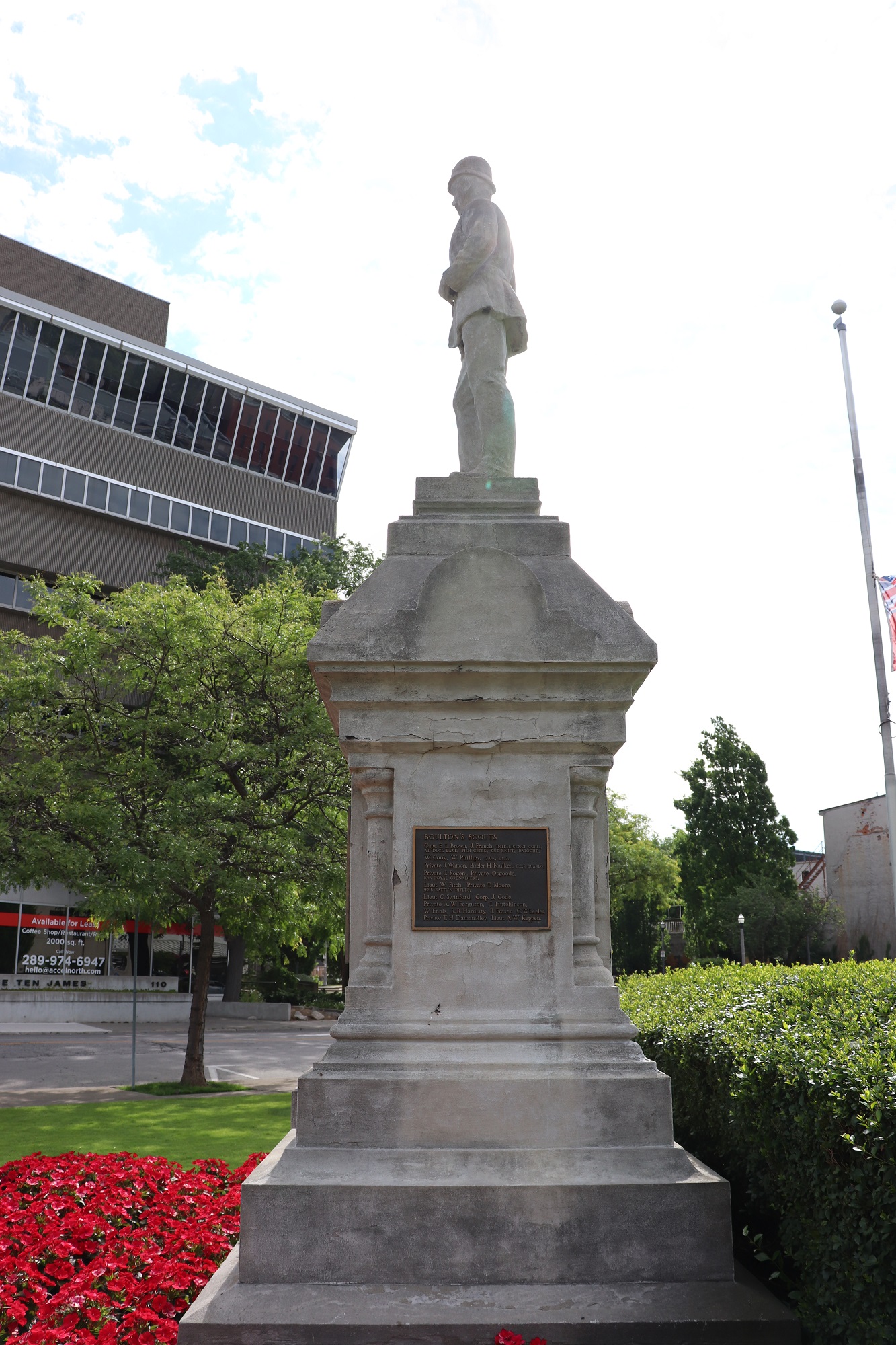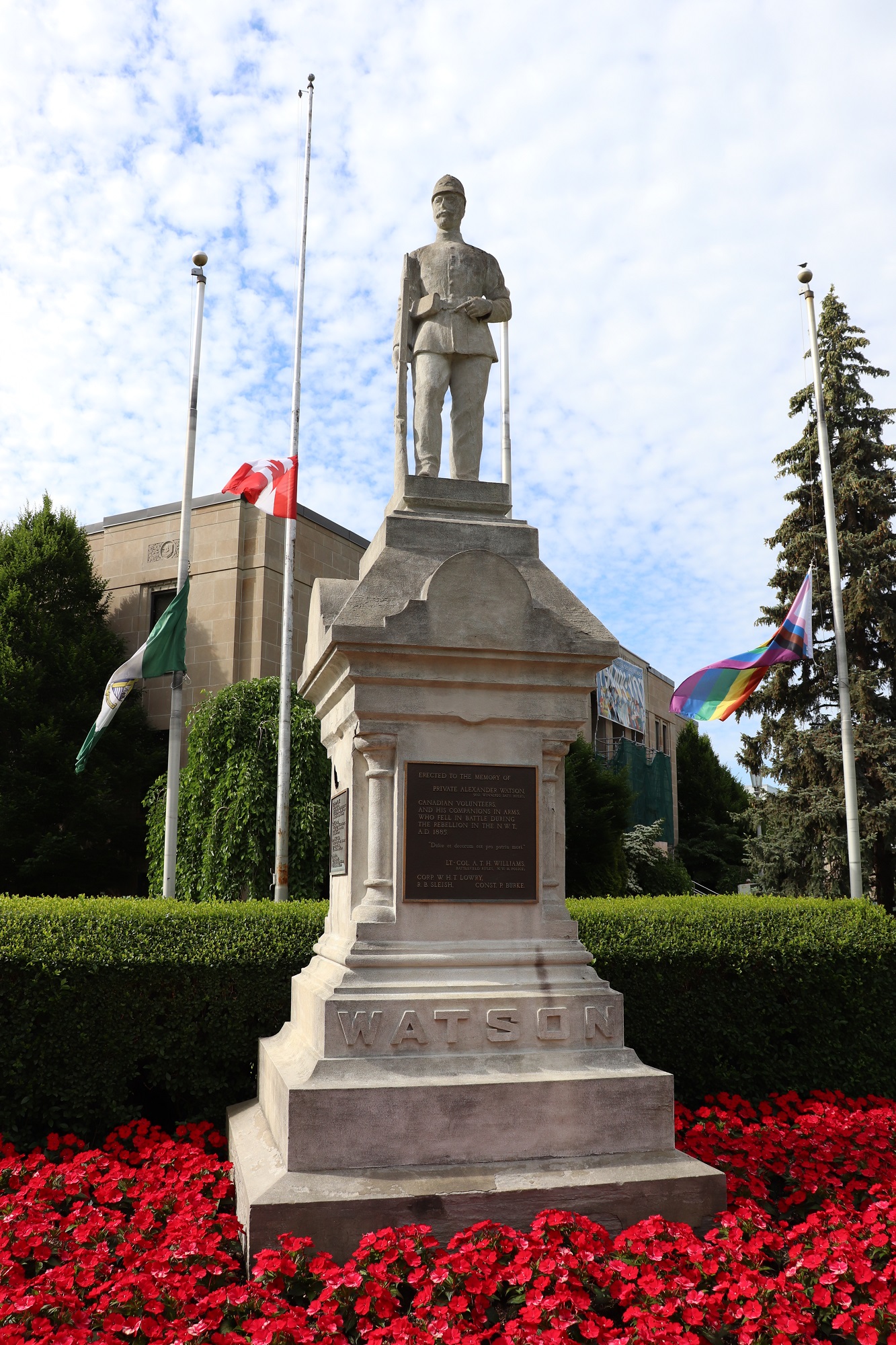 The Watson Monument was erected by the people of St. Catharines in 1886 in memory of Private Alexander Watson, 90th Winnipeg Battalion Rifles, Canadian Volunteers, and his companions in arms, who fell in battle during the North West Resistance in the Northwest Territories, A.D., 1885.
