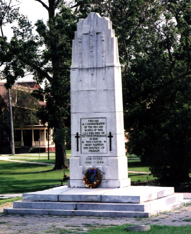 This memorial was constructed in the memory of the men and women of Port Arthur who died in the First and Second World Wars and the Korean Conflict. It was built in 1925 by the McCallum Granite Co. of Kingston, Ontario, through efforts of the Women's Canadian Club, at a cost of $8,000.