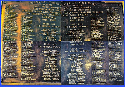This plaque was erected by the Wesley United Church in memory of the members of the church that were killed in the First World War.