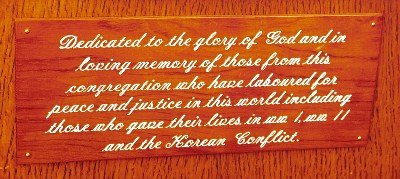 This organ was erected by the Wesley United Church to honour those from the congregation that were killed in the First and Second World Wars and Korea.