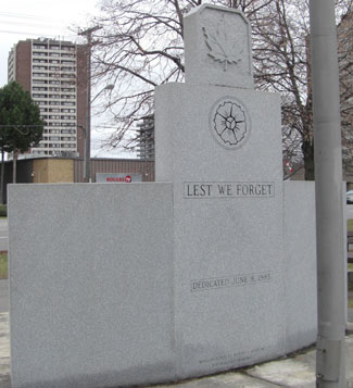 By 1984, vandalism took its toll on the memorial, so Charley Timms and a dozen other members of the Royal Canadian Legion Branch 480 relocated the plaque to the Branch 480 building where it is now mounted on the outside wall facing Richmond Road.