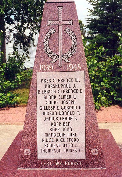 Erected by the Whitemouth Museum Society in November 1982, this memorial is dedicated to the local war dead of the First and Second World Wars.