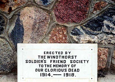 This cairn was erected by the Windthorst Soldiers' Friend Society in memory of those who lost their lives in the First World War.