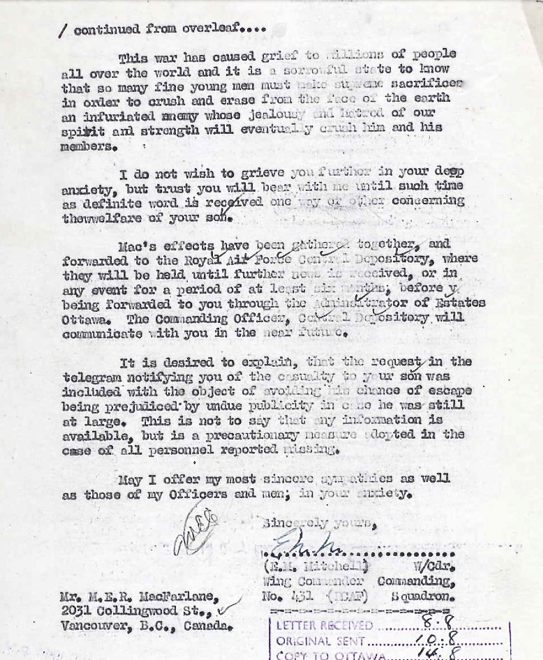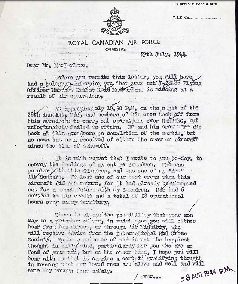 Digital gallery of Flying Officer Matthew Ernest Reid MacFarlane