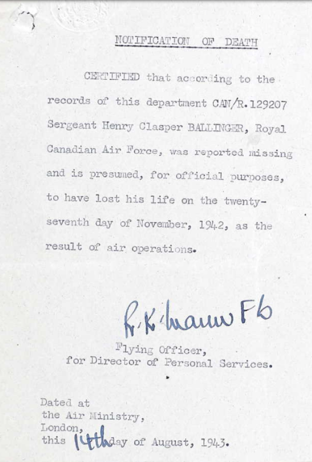 Page 56 of the Second World War Book of Remembrance.