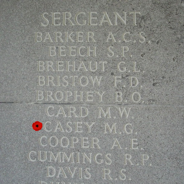 IN THIS CLOISTER ARE RECORDED THE NAMES OF TWENTY THOUSAND AIRMEN WHO HAVE NO KNOWN GRAVE. THEY DIED FOR FREEDOM IN RAID AND SORTIE OVER THE BRITISH ISLES AND THE LANDS AND SEAS OF NORTHERN AND WESTERN EUROPE