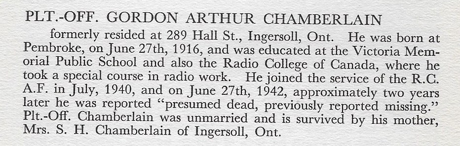 Digital gallery of Pilot Officer Gordon Arthur Chamberlain