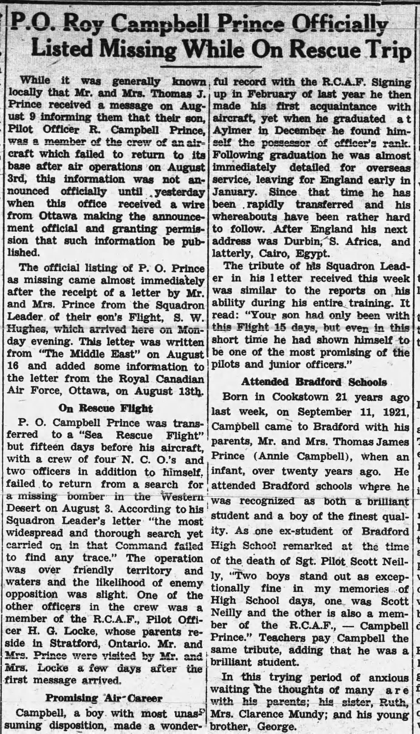 Digital gallery of Pilot Officer Roy Campbell Prince