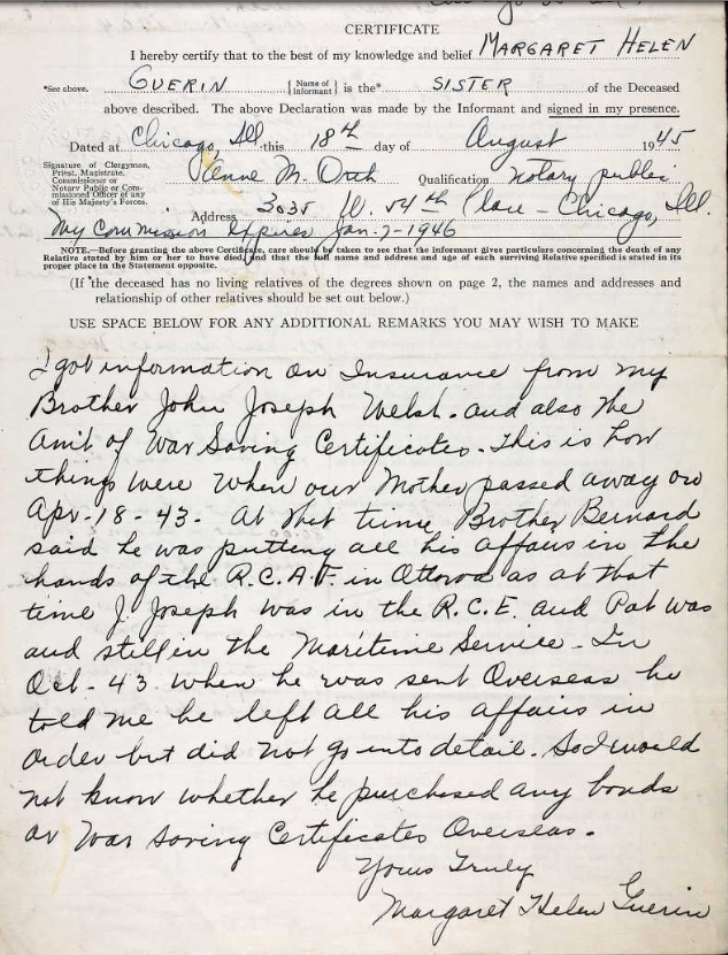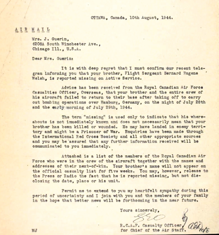 Digital gallery of Pilot Officer Bernard Eugene Welsh