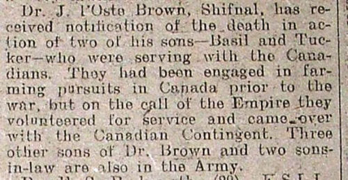 Brother of Private Basil Hutton L'Oste Brown, who died the same day while serving in the same unit.