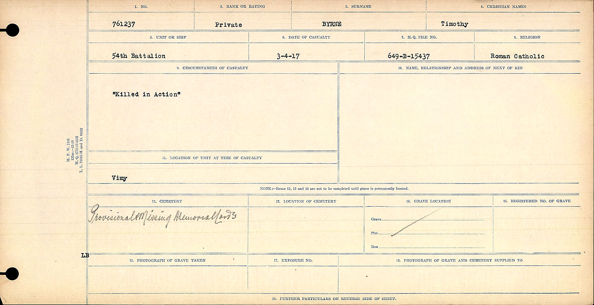 Inscribed on the ramparts of the Vimy Memorial are the names of over 11,000 Canadian soldiers who were posted as 'missing, presumed dead' in France.