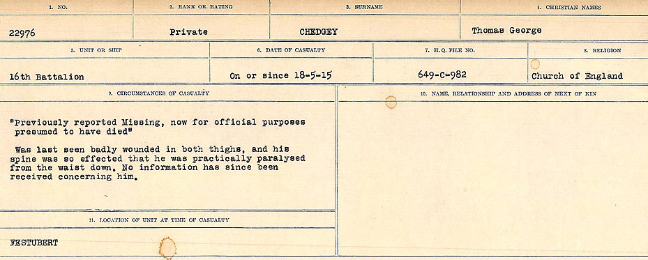 Digital gallery of Private Thomas George Chedgey