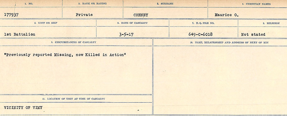 Inscribed on the ramparts of the Vimy Memorial are the names of over 11,000 Canadian soldiers who were posted as 'missing, presumed dead' in France.