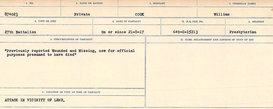 Inscribed on the ramparts of the Vimy Memorial are the names of over 11,000 Canadian soldiers who were posted as 'missing, presumed dead' in France.