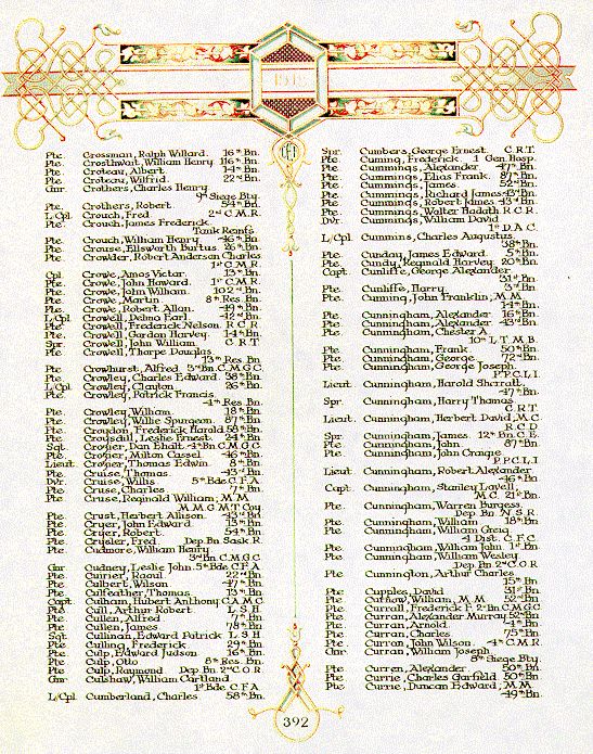 Page 392 of the First World War Book of Remembrance.