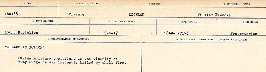 Digital gallery of Private William Francis Dickson