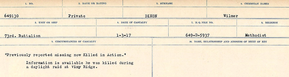 On April 3, 2003, the Government of Canada designated April 9th of each year as a national day of remembrance of the Battle of Vimy Ridge.