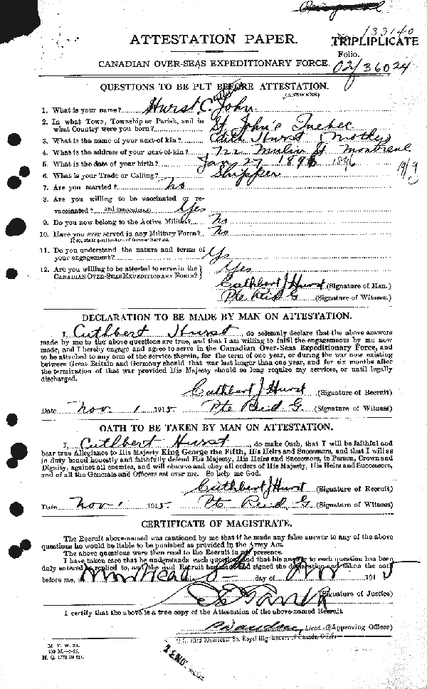 Private Cuthbert John Hurst