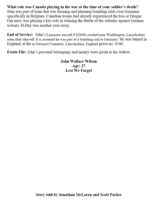 Son of Christopher Winfred Wilson and Lottie Alma Wilson; husband of Mildred B. Wilson, of Waterloo, Quebec.