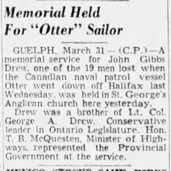 The HALIFAX MEMORIAL in Nova Scotia's capital, erected in Point Pleasant Park, is one of the few tangible reminders of the men who died at sea. Twenty-four ships were lost by the Royal Canadian Navy in the Second World War and nearly 2,000 members of the RCN lost their lives.