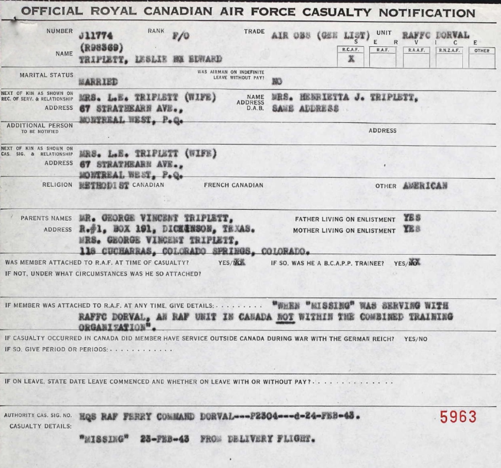 Digital gallery of Flying Officer Leslie Edward Triplett