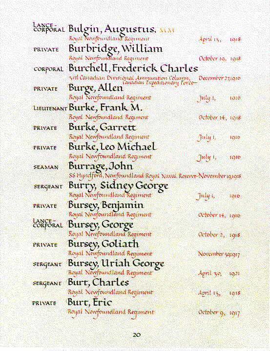 Page 20 of the Newfoundland Book of Remembrance.