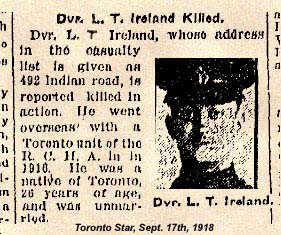 Son of William and Catherine M. Ireland, of 273, Pacific Avenue, Toronto.