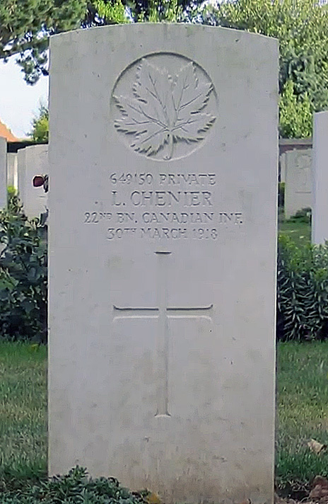 He enlisted with the 159th Battalion of the Canadian Expeditionary Force. He arrived in England on 11 November 1916. Because of his young age, he was withdrawn from service until 30 January 1917, when he was posted to the 8th Reserve Battalion. From 15 May 1917 to 9 August 1917 he was on loan to the 5th Army Troops Corps and subsequently transferred to the 10th Reserve Battalion. He was transferred to the 22nd Battalion on 15 October 1917. He arrived in France the same day and went to the front line on 24 November. He was killed in action on 30 March 1918 east of Boisleux-Saint-Marc, at Mercatel, Arras.