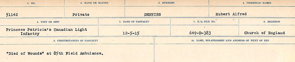 Digital gallery of Private Hubert Alfred Denniss
